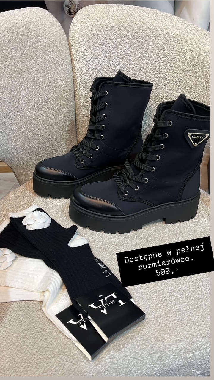 La milla czarne trapery workery z trójkątnym logo 37, 38, 39 i 40