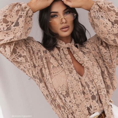 Koszula z wiązaniem przy szyi koronka mokka onesize