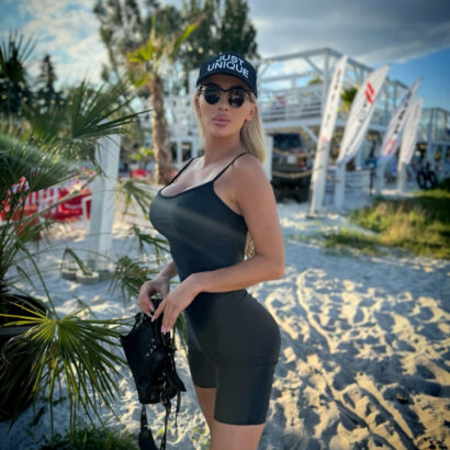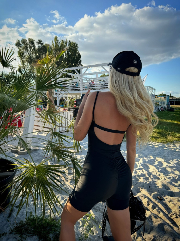 Kombinezon o krótkim kroju w czarnym kolorze wykonany z bardzo elastycznej i uwielbianej przez nasze klientki lycry, która idealnie się dopasowuje. Model na cienkie ramiączka z klasycznie wyciętym dekoltem. Z tyłu na plecach posiada niezwykły wycięty dekolt, który zabezpieczony jest paseczkiem. Z tyłu na wysokości bioder posiada marszczenia, które dodatkowo podkreślają figurę.