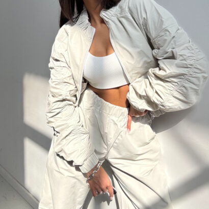 - Oldschoolowy komplet dresowy składający się z wygodnych spodni i kurtki marszczonej to idealne połączenie klasycznego stylu i codziennego komfortu. Świetnie sprawdzi się zarówno do szpilek, jak i w luźniejszych, streetwearowych stylizacjach.