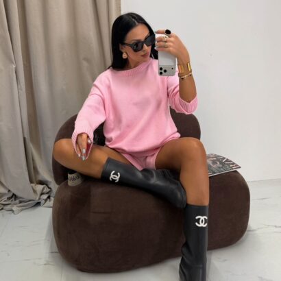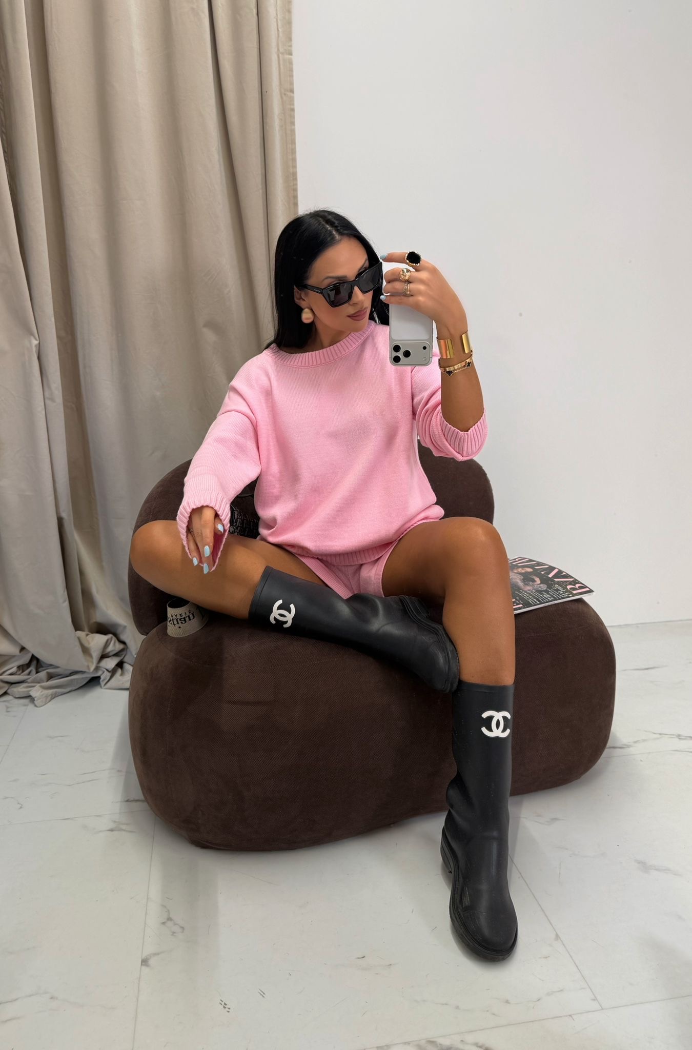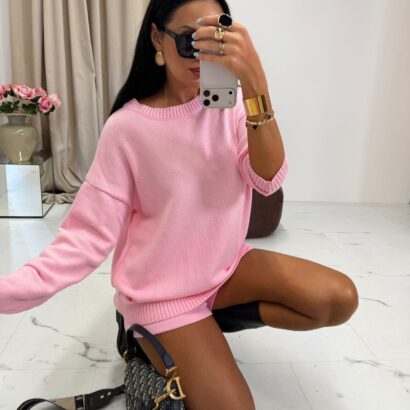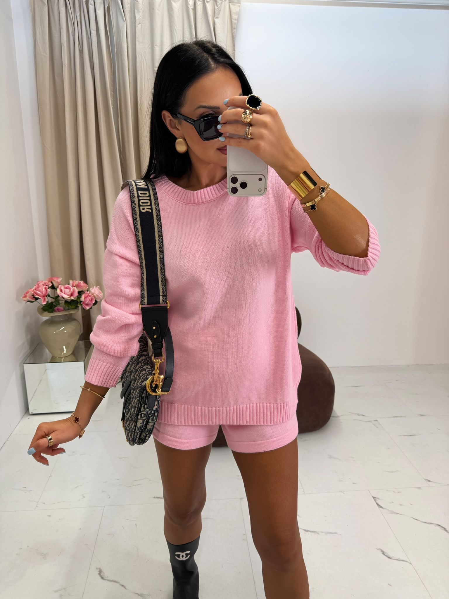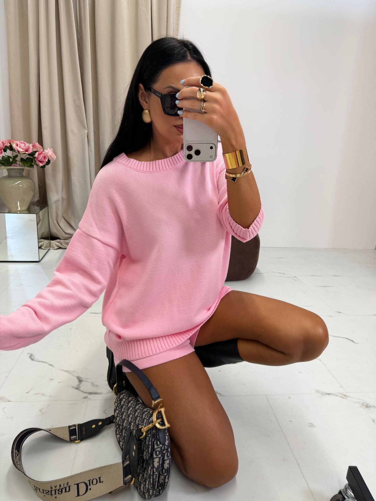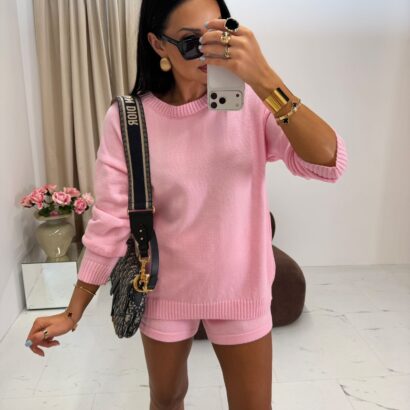 Bądź pierwszą osobą, która wyświetli "Komplet sweterkowy róż swetr i szorty onesize"
