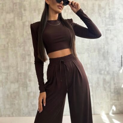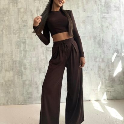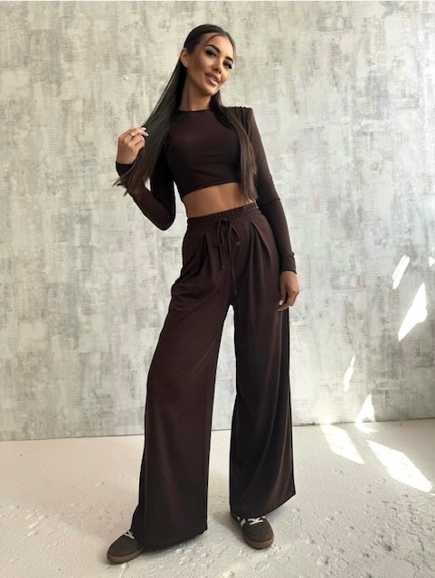 Komplet czekoladowy z szerokimi spodniami onesize