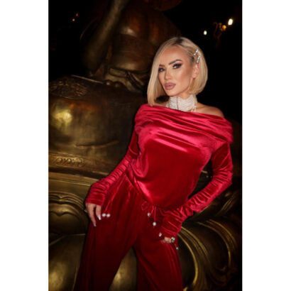 Komplet welurowy RUBBY to esencja kobiecej zmysłowości i luksusu zamknięta w wyjątkowej, wieczorowej formie. Wykonany z miękkiego, aksamitnego weluru pięknie układa się na sylwetce, delikatnie połyskując przy każdym ruchu.