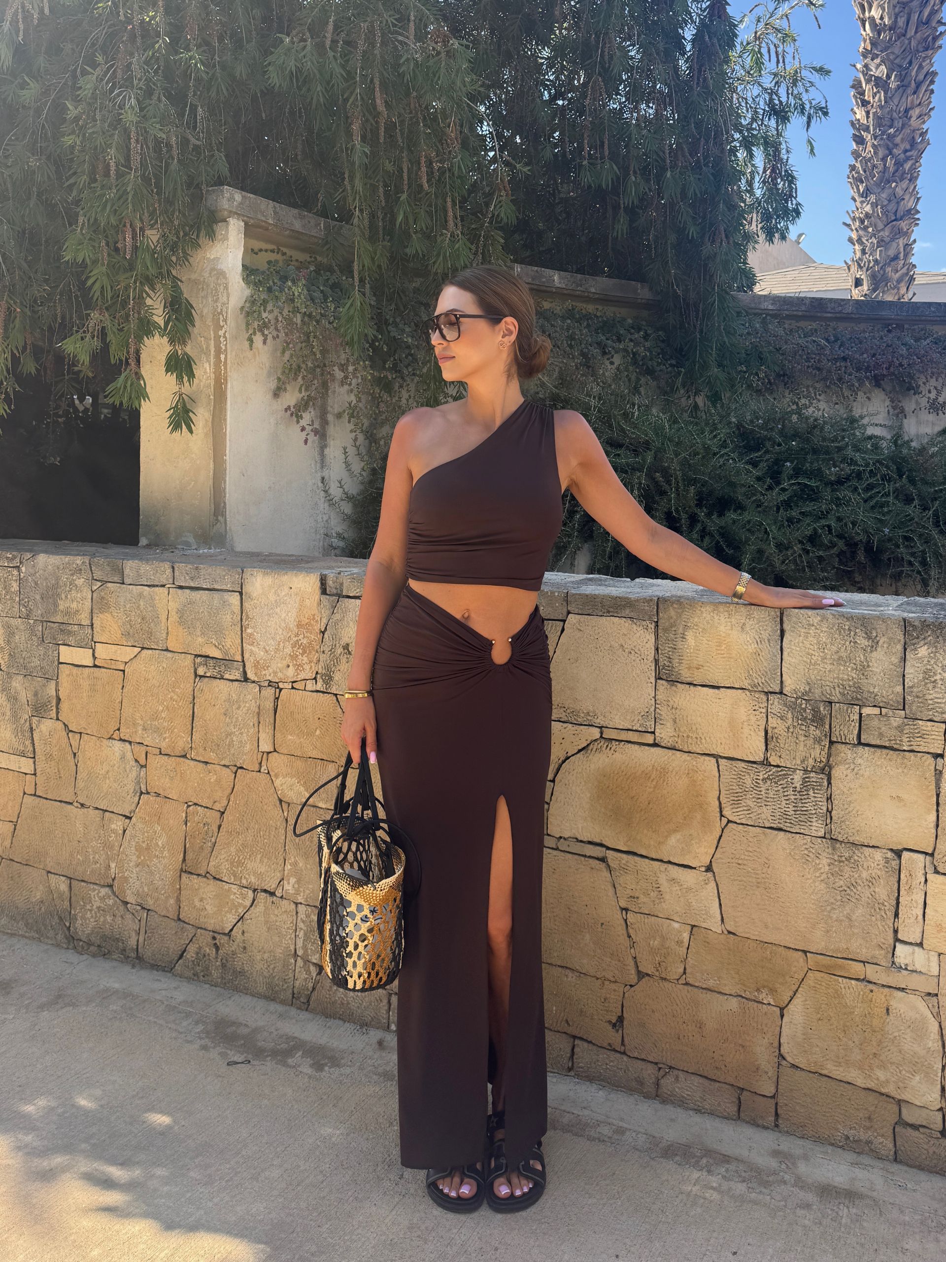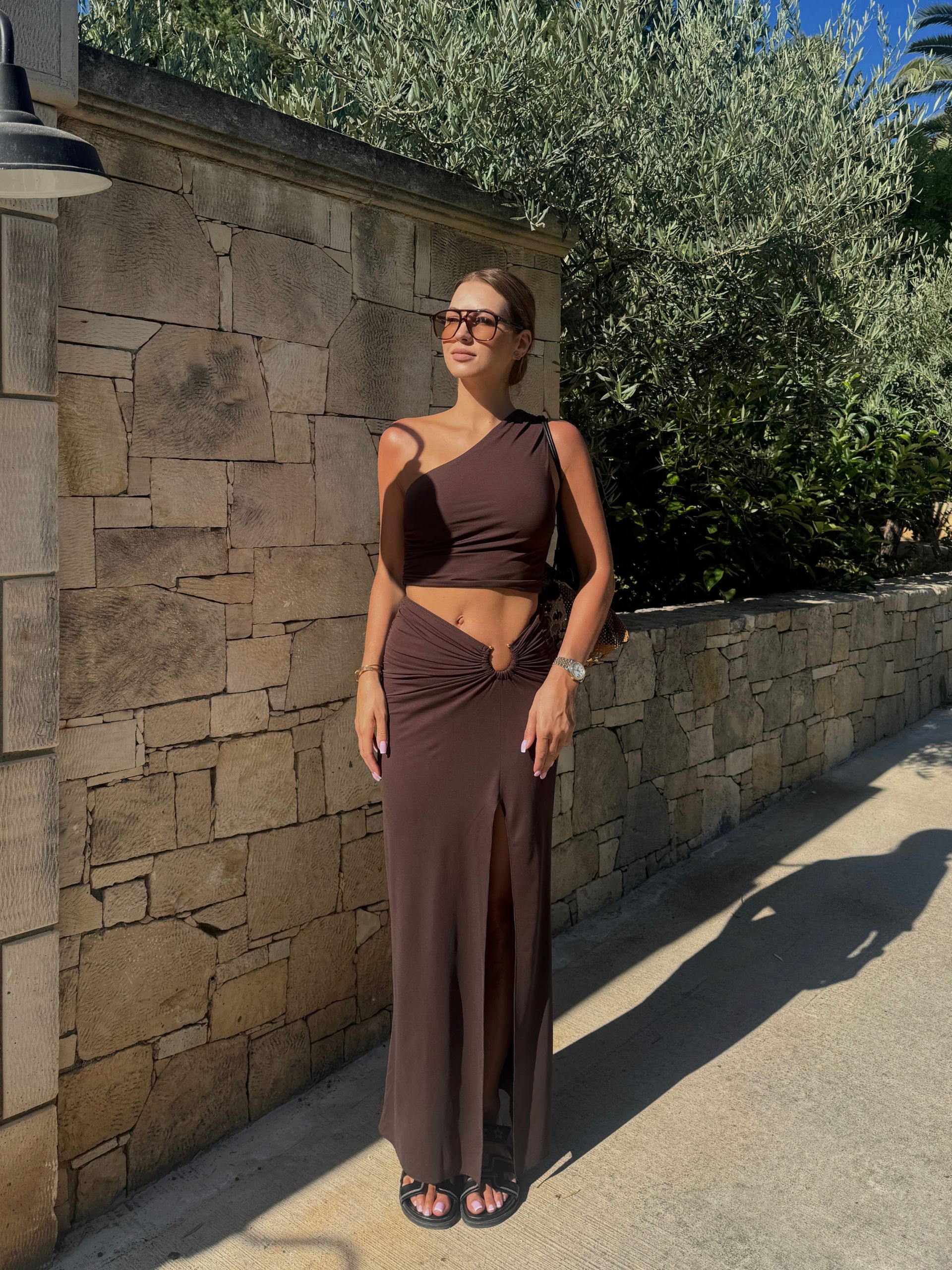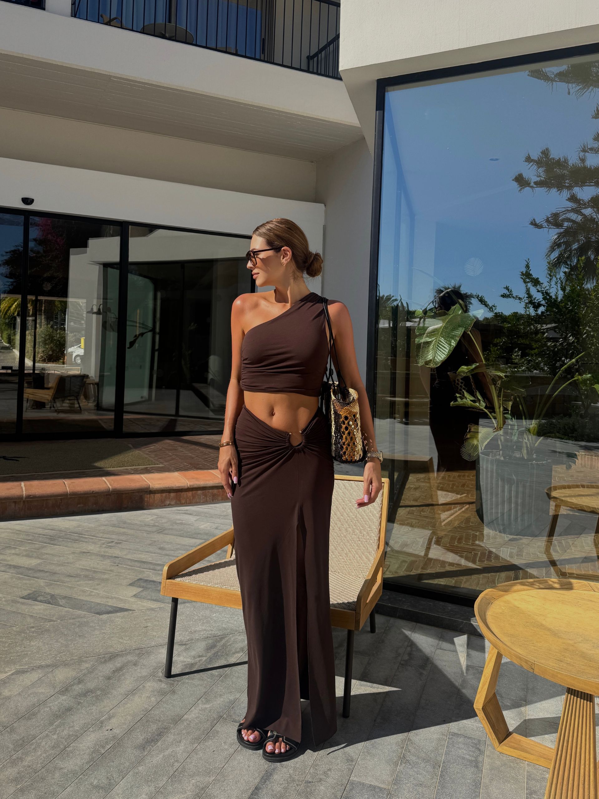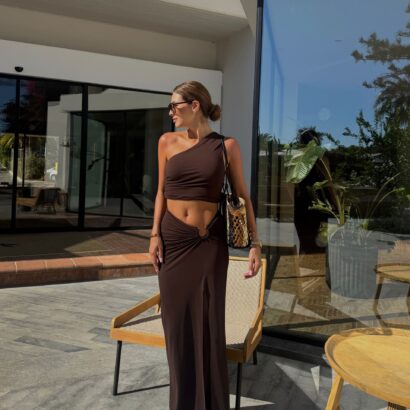 AVAE komplet czekolada 2-częściowy spódnica maxi i top M