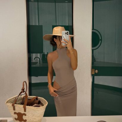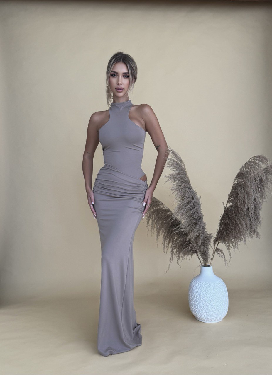 Składa się z eleganckiego body z pięknymi wycięciami przy ramionach, które dodają szyku, oraz długiej, marszczonej po bokach spódnicy o fasonie po skosie. Ten zestaw idealnie podkreśla sylwetkę i zachwyca swoją wyjątkowością! Kto się w nim zakochał? ![]()