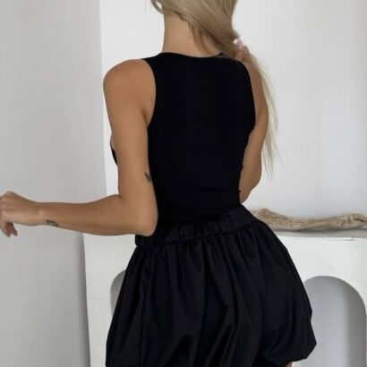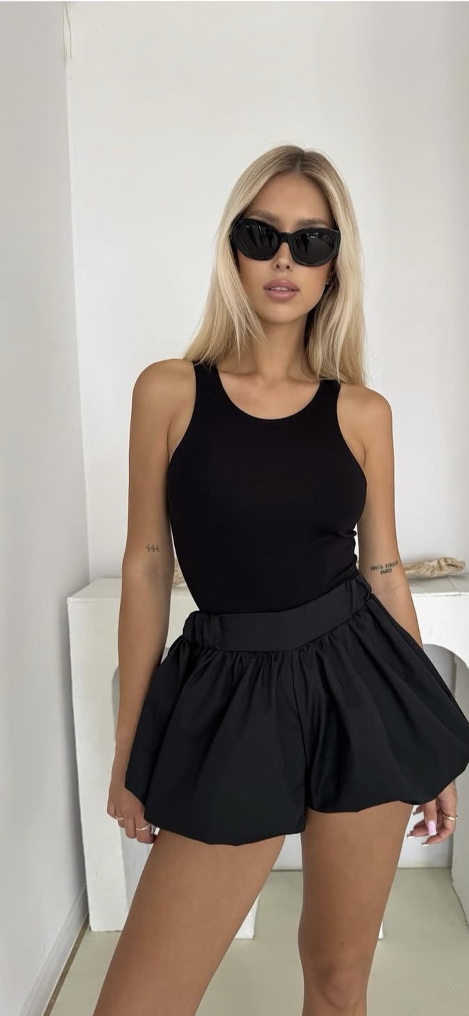 Kobiecy, letni look w czerni ! Ten stylowy zestaw z bodami zapinanymi na napy i wygodnymi spodenkami to idealna propozycja na ciepłe dni. Lekki materiał i luźny krój dodają elegancji i komfortu. 💫 Idealny na spacer, kawę z przyjaciółmi czy niezobowiązujące wyjście! 😍