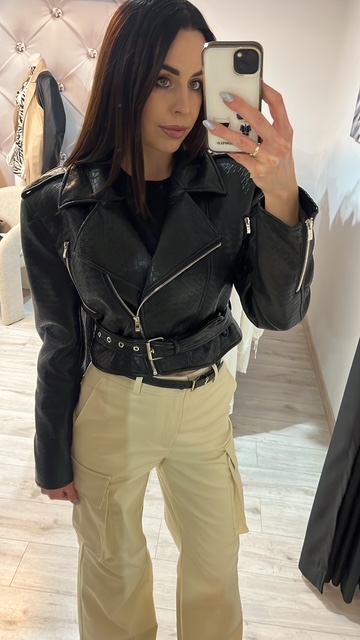 - Piękna, krótka kurtka ramoneska wykonana z wysokiej jakości eco skóry