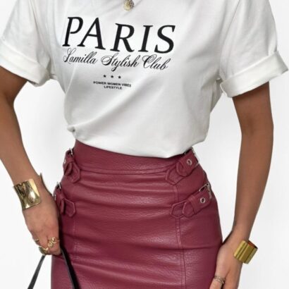 La Milla spódniczka skórzana wiśniowa z paskami po boku to najbardziej elegancki i kobiecy model tej wiosny. Spódniczka La Milla idealnie pasuje kolorystycznie do naszej krótkiej kurtki skórzanej lub kurtki La Milla Tessa. Spódniczka skórzana jest wykonana z wysokiej jakości włoskiej skóry ekologicznej przez co prezentuje się niezwykle oryginalnie i luksusowo. Unikatowy i dopracowany w najmniejszym szczególe krój z bocznymi paskami sprawia, że spódniczka jest niezwykle wygodna i elegancka.