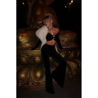 Spodnie można połączyć w kompletny zestaw z bluzką CAMILLA oraz shortami CAMILLA z tego samego, welurowego modelu, tworząc spektakularny total look Just Unique.